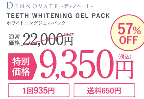 DENNOVATE(ディノベート) ホワイトニングジェルパックの初回購入価格は、通常価格22,000円が57%OFFの特別価格9,350円(税込)です。