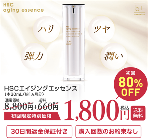 HSCエイジングエッセンスの定期便を利用すると、初回は通常価格8,800円が80%OFFの1,800円で購入できます。
