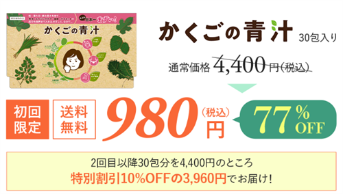 かくごの青汁は、通常購入では4,400円(税込)ですが、定期購入を利用することで初回限定価格980円(税込)で購入できます。