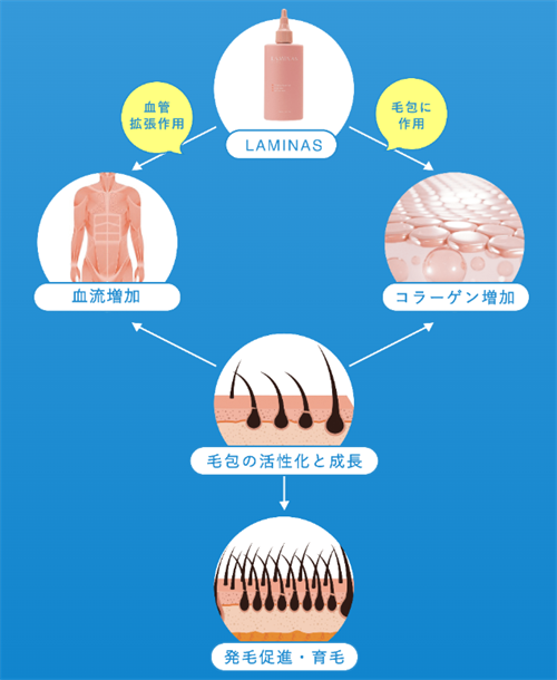 A:LAMINAS(ラミナス)は頭皮環境を整え、髪の成長を促進する医薬部外品です。