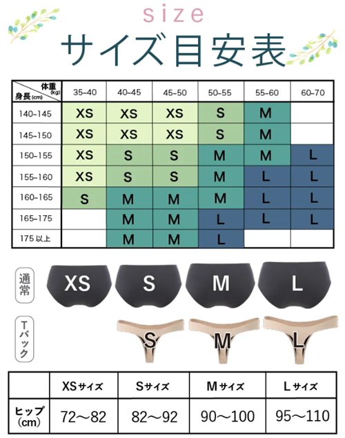 モモフル吸水ショーツを購入する際、最も重要なのがサイズ選びです。