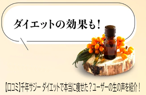 千年サジーのダイエットに関する口コミや評判を徹底的に調査しました! 実際に試した人のリアルな体験談や、効果が期待できる飲み方、継続のコツについて詳しく解説します。 千年サジーは、ダイエットや美容、健康維持に効果的なスーパーフードとして多くの口コミで注目されています。 ビタミンCや鉄分など豊富な栄養素を含んでおり、健康的に痩せたい方に最適なサポートを紹介します。 多く