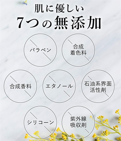 肌に優しい7つの無添加処方だから、敏感肌の方にもおすすめです。