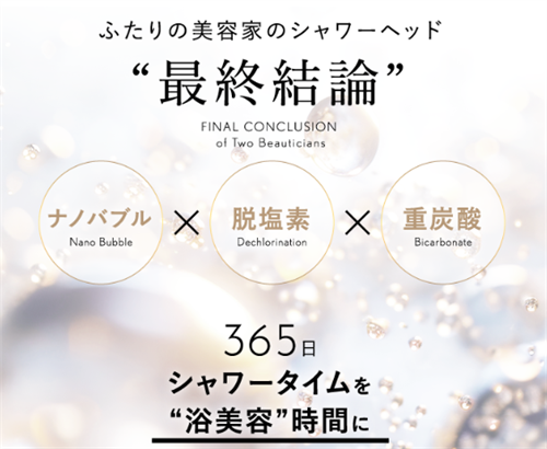 その最大の特徴は、ナノバブル技術と塩素除去機能、さらに重炭酸タブレットを組み合わせることで、肌や髪に最適なケアを毎日のシャワーで実現できる点です。
