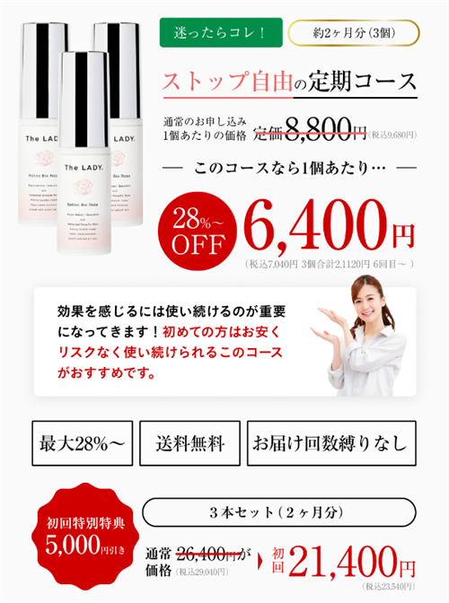 3本セット定期コースは、レチノビオローズを長期的に使い続ける方に最もお得なプランです。
